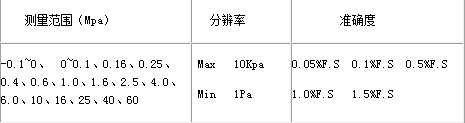 1、量程:- 95 kPa ~ 60 MPa(各檔)