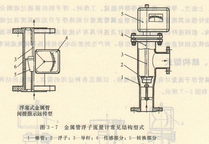 可測量高溫、高壓流體是金屬浮子流量計具有的主要優(yōu)點,它能測量溫度高達400℃和壓力最高為70MPa的液體和氣體流量。在這種場合下已不能用人眼來觀察浮子的位置,而采用磁耦耐腐型感應的顯示系統(tǒng)指示流量。流量計本身材料往往采用優(yōu)質不銹鋼,有些襯以工程塑料,可測量腐蝕性流體,示器典型結構見圖3-8所示。