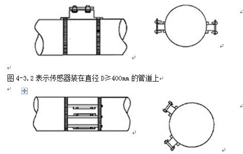 圖4-3.1所示為傳感器裝在直徑D<400mm管道上