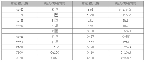 輸入信號類型表